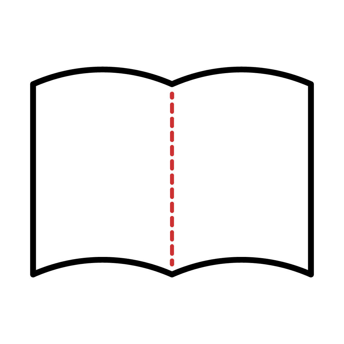 用紙を中央で二つ折りにし、背の中央部分をホチキス(金属針)で留める方法です。 製本コストが抑えられ、軽量かつ取り回しの良さが特徴です。ページ数が少ない冊子に最適です。■ 主な用途
